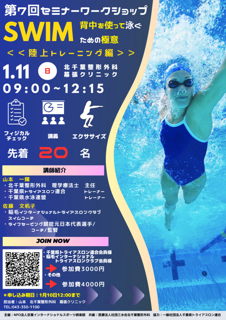 🏊♂️第7回スイムワークショップセミナー開催のお知らせ~背中を使って泳ぐための極意〈陸上トレーニング編〉~